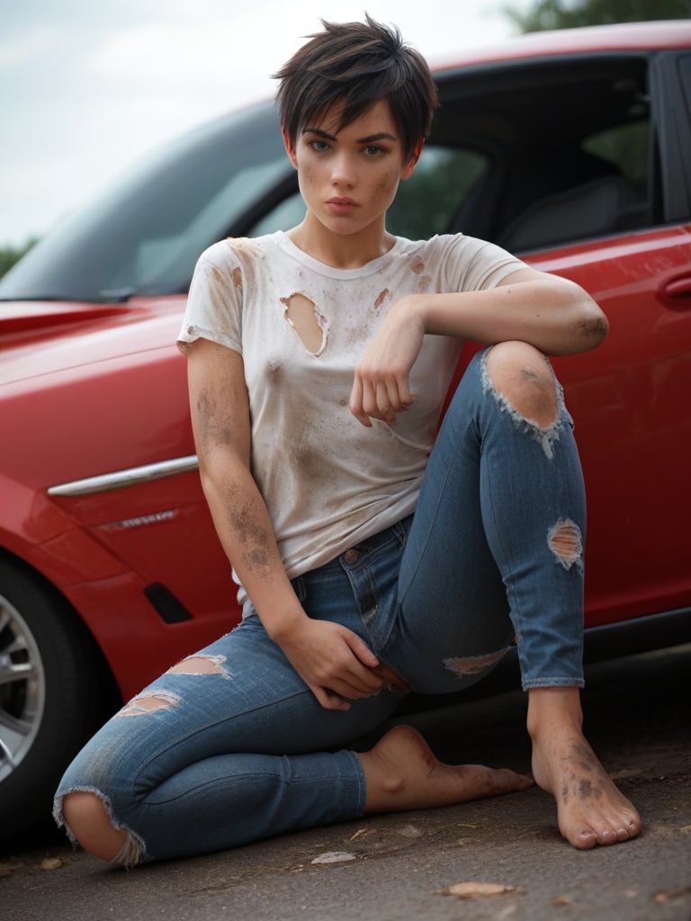 That’s what she’s doing now. You approach her family’s garage to find her leaning into her car’s engine, the hood up and Cadey bent far over. For such a boyish girl, her ass is all woman. Those jeans don’t hide those curves.