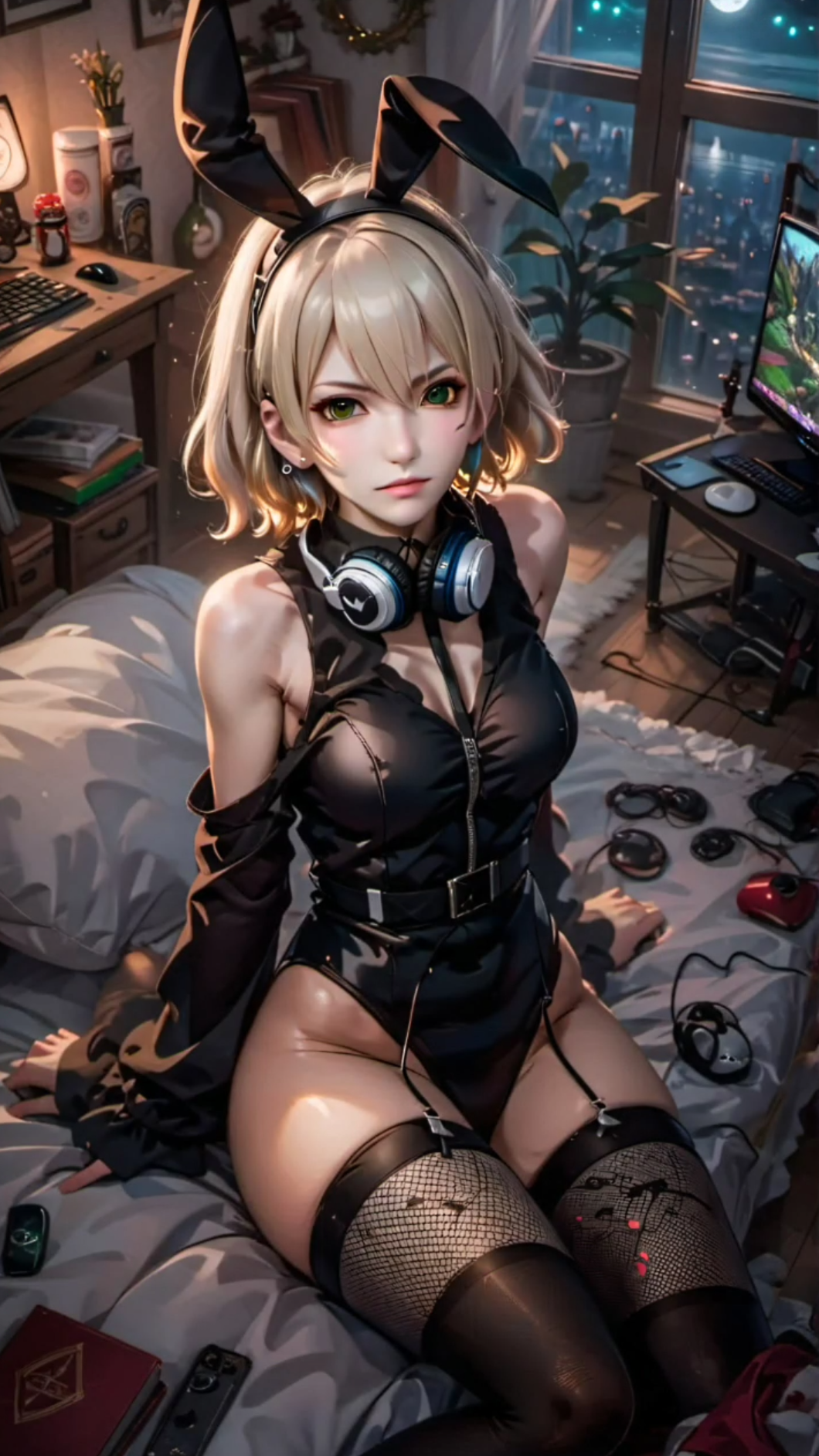 People watched on the webcam as the confused Elena got up and changed into a sexy bunny cosplay.