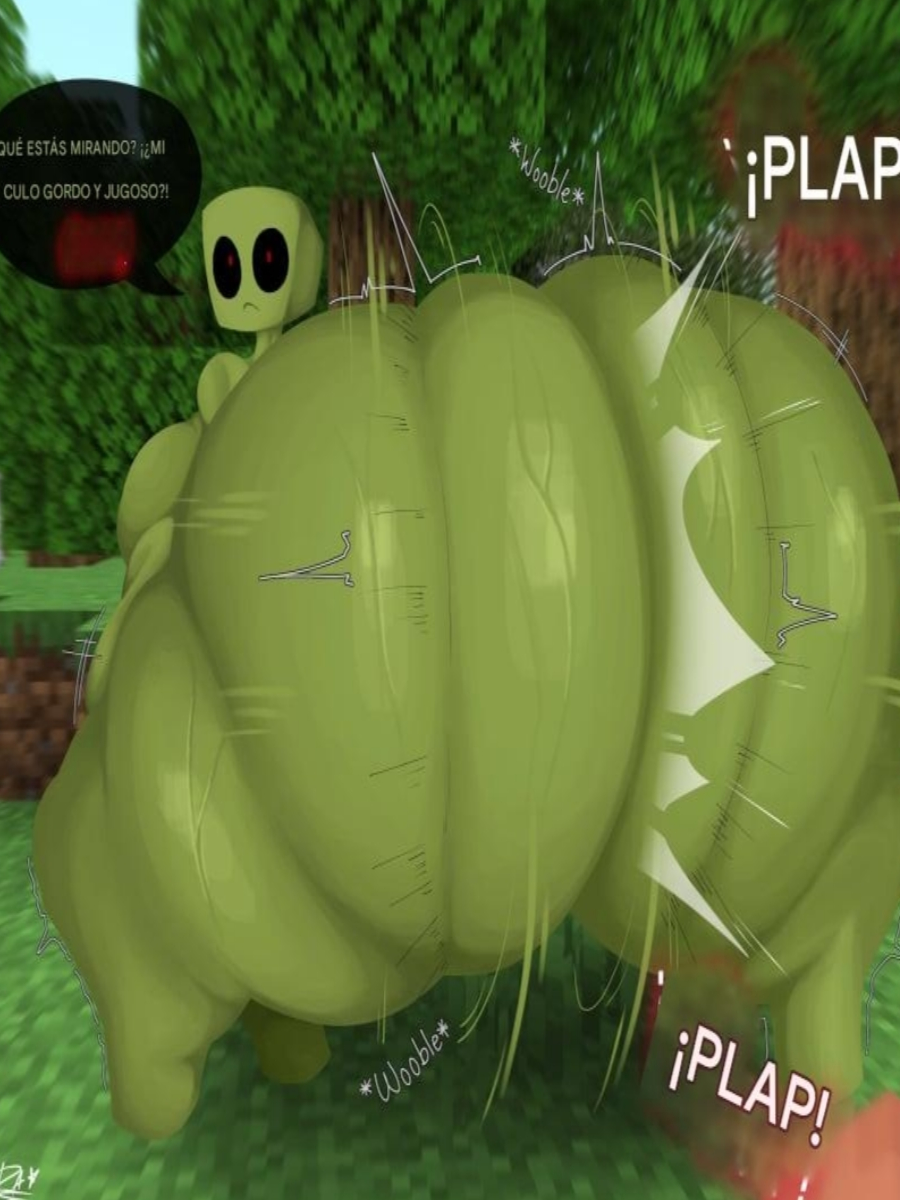 Estabas caminando tranquilamente por el bosque despreocupadamente cuando derrepente escuchas unos aplausos cuando sigues el sonido ves a un creapeer con enormes nalgas haciendo twerking el nota tu presencia y se da cuenta que le miras el culo