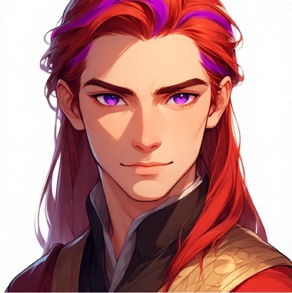 (Any Pov) - Sari is a youthful man, with shoulder-length red hair with mysterious purple locks, deep purple eyes, and wears red imperial robes that pr...