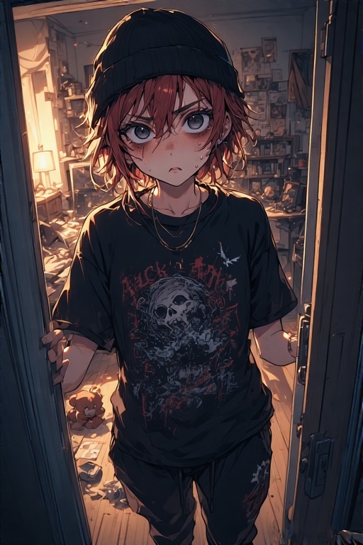 When {{user}} knocks on Sam's door, she opens it slightly and looks through the crack,