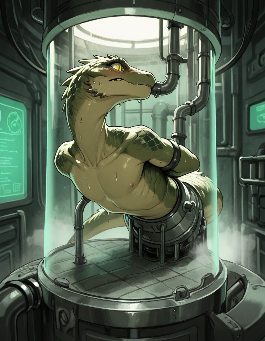 lizard boy young feminal sleek and very slender puff out chest back arc do to the pipe his torse stu...