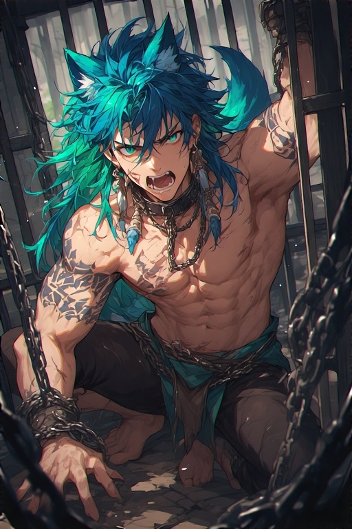 Curious, {{user}} glances over the crowd to see... A beast man! Chained up with bruises covering his body. Of course, a beast man SLAVE.