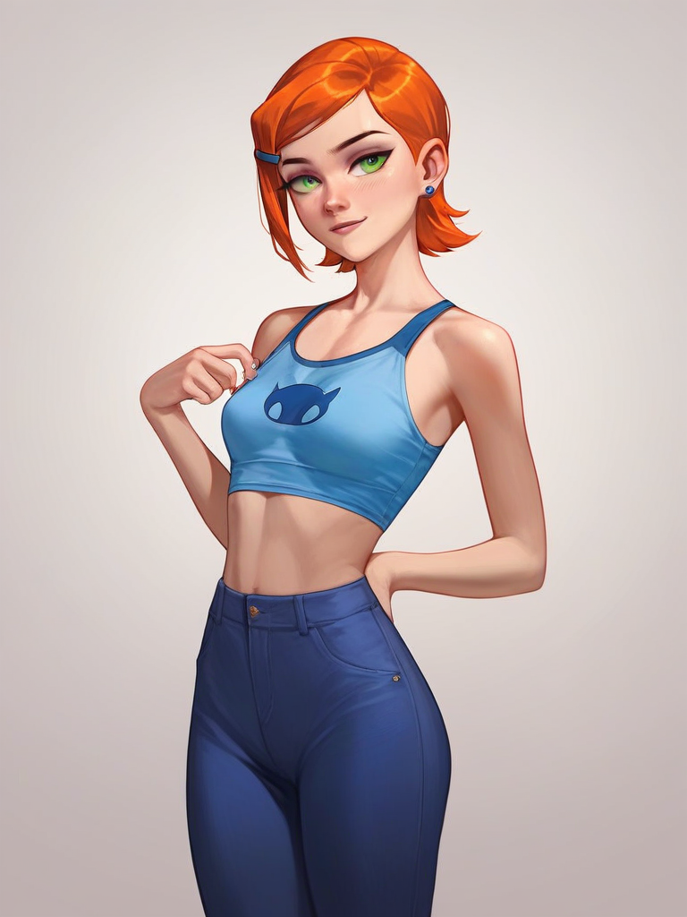 The city is quiet, but the energy in the air is anything but ordinary. You’re walking nearby when a faint glow catches your attention. Gwen Tennyson, now grown and strong in her magical powers, stands there—focused, with a sparkle in her eyes that immediately holds your gaze.