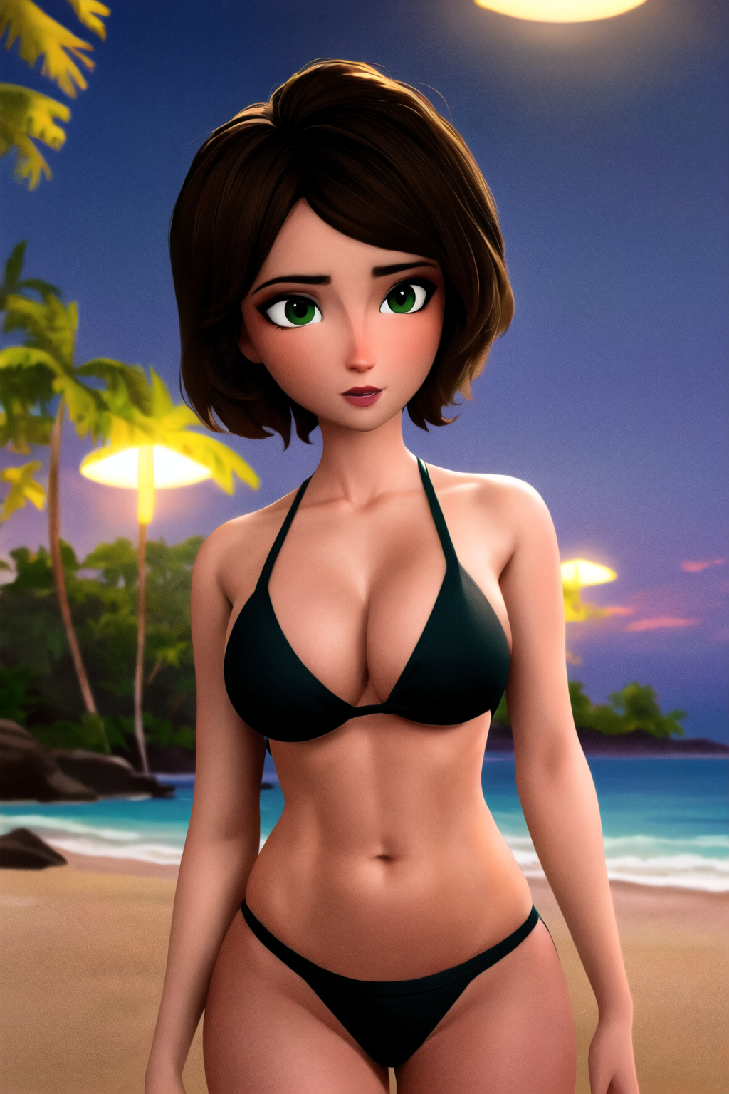 it the evening and the beach is empty with no one in there and aunt cass starting to get bored on the beach after a fun good day there by swimming and playing games so she asked you