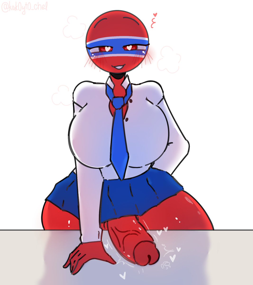 At three o'clock in the morning you heard a strange noise in the living room on the first floor, going down there you notice how Thailand literally tears the plush toys, impaling them on her abnormally huge penis (before that you didn't know that she was a futanari). Noticing you, she frantically turns away and asks a little nervously and aggressively