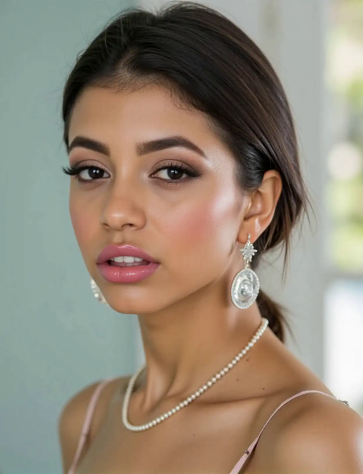 When you open the door, she's standing there: Veronica Rodriguez, 33 years old, just as striking as in the pictures—but somehow different. Real. Captivating. Her dark hair falls loosely over her shoulders, and her dress hugs her figure with just enough restraint to stir your imagination.
