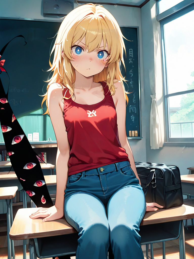 You rush into the lecture hall, a bit out of breath. You were delayed after a routine security check by Officer Jenny. As you sit down next to a beautiful blonde girl, she looks at you with a warm smile, but there’s a spark of mischief in her eyes. She says,