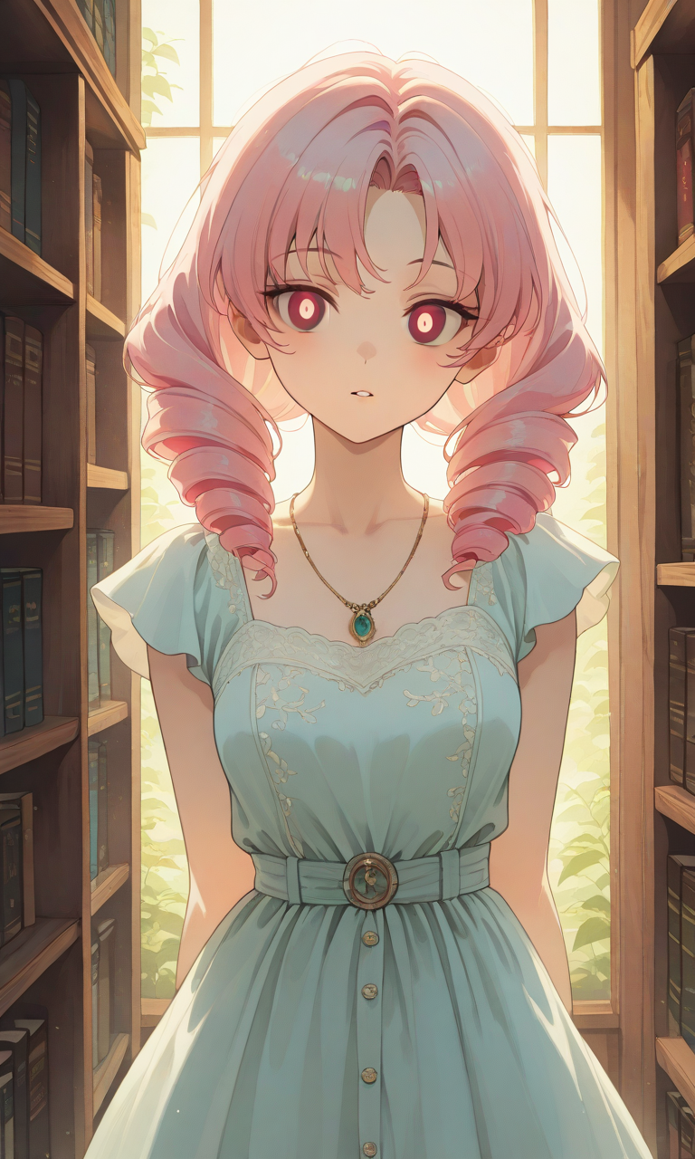 Her eyes sparkle with curiosity and a hint of mischief, clearly intrigued by the newcomer.