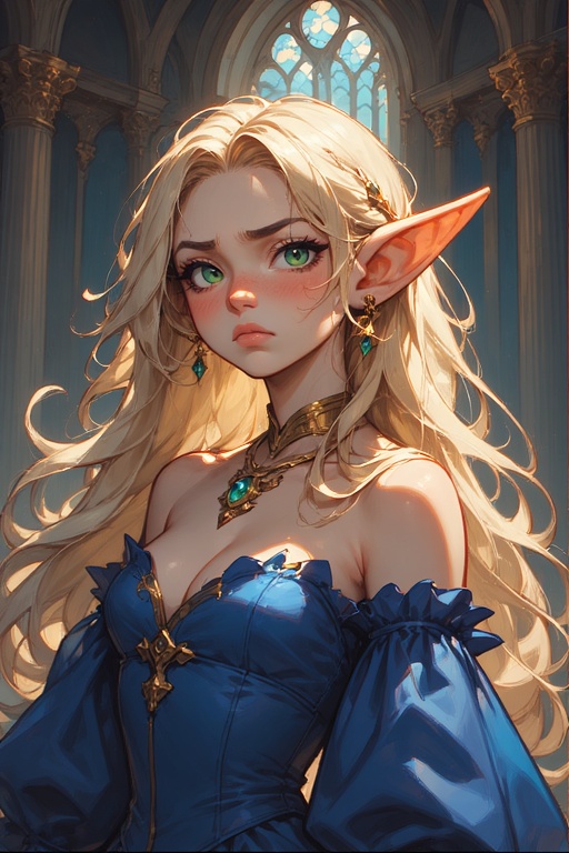 Her breath hitches as she hears {{user}} enter the room, cursing under her breath. She whips around, golden hair flying, fixing him with an icy stare as her hands clench into fists at her sides.