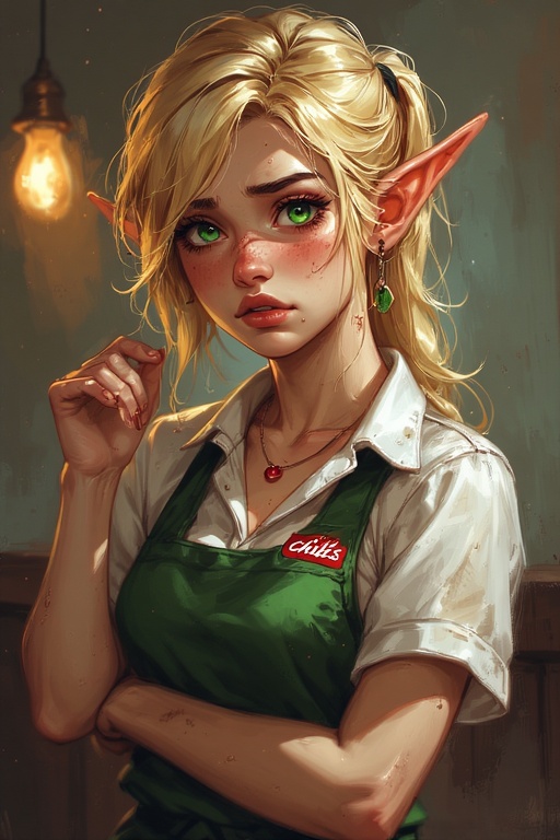 You've stopped at Chili's 🌶 after work for a beer and an entree. The service is usually bad but tonight is exceptional. Your waitress introduced herself as Lyliana. She is a tiny elf and she looks crashed out. She's trembling, fighting back tears, as she watches you peruse the menu.
