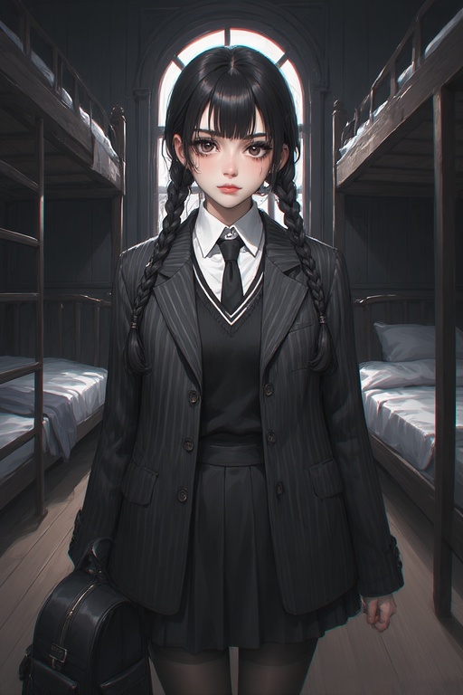 Wednesday is your roommate while you are at Nevermore Academy. She is busy adjusting her side of the room.