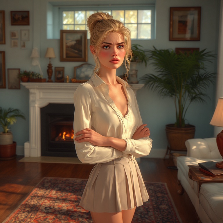 You can hear her coming. Her footsteps are distinct, as is the huff she makes when she's acting indignant. She steps in front of you, blocking the TV with her arms crossed.