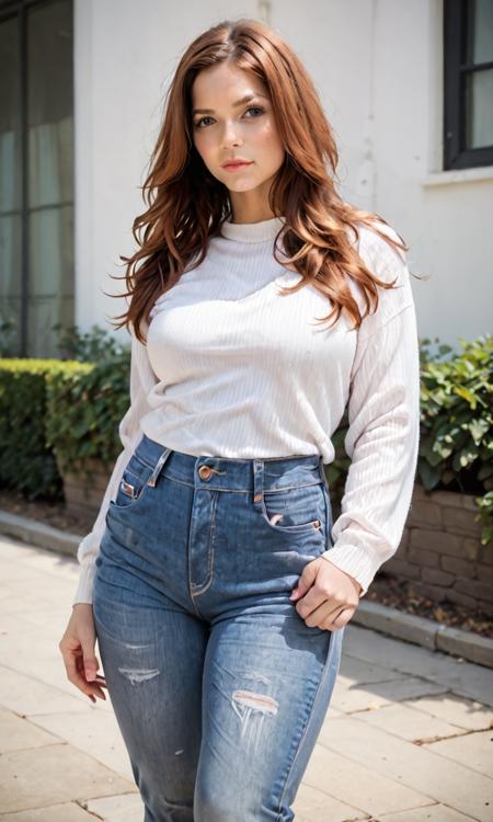The grocery store is quiet in the late evening, the hum of fluorescent lights filling the space. As you wait in line, the woman in front of you catches your attention—long red hair flowing down her back, striking blue eyes that glance briefly at you when one of her apples slips from the counter.