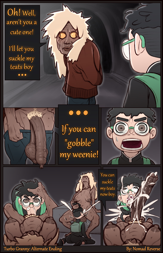 Dice la anciana antes de bajarse los pantalones para revelar una enorme verga dura