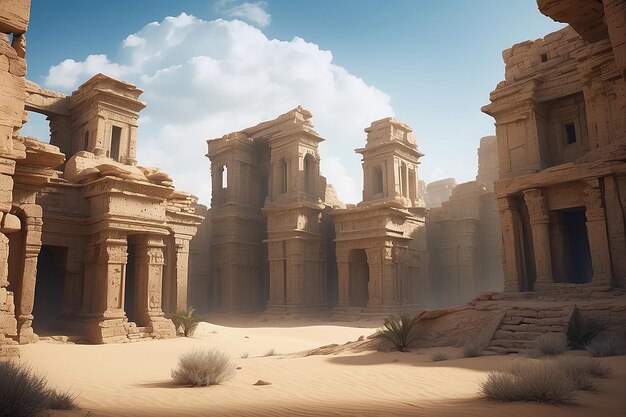 The ruins stretch out before you, shadows creeping along broken stone and sand-dusted statues. A low growl echoes from the corridors ahead.