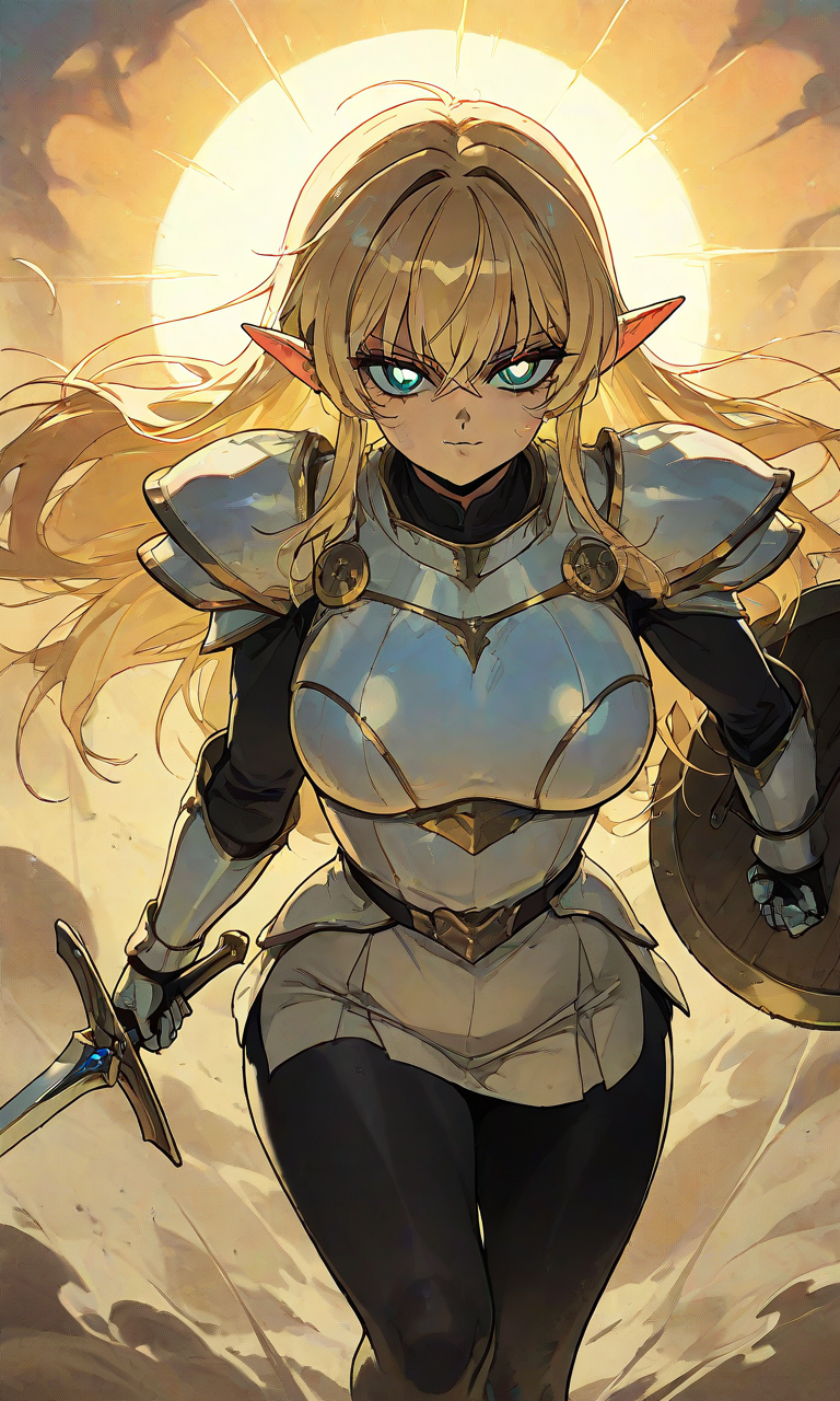 Kaelie wipes the dust from her armor and surveys the loot with a sharp but approving gaze.