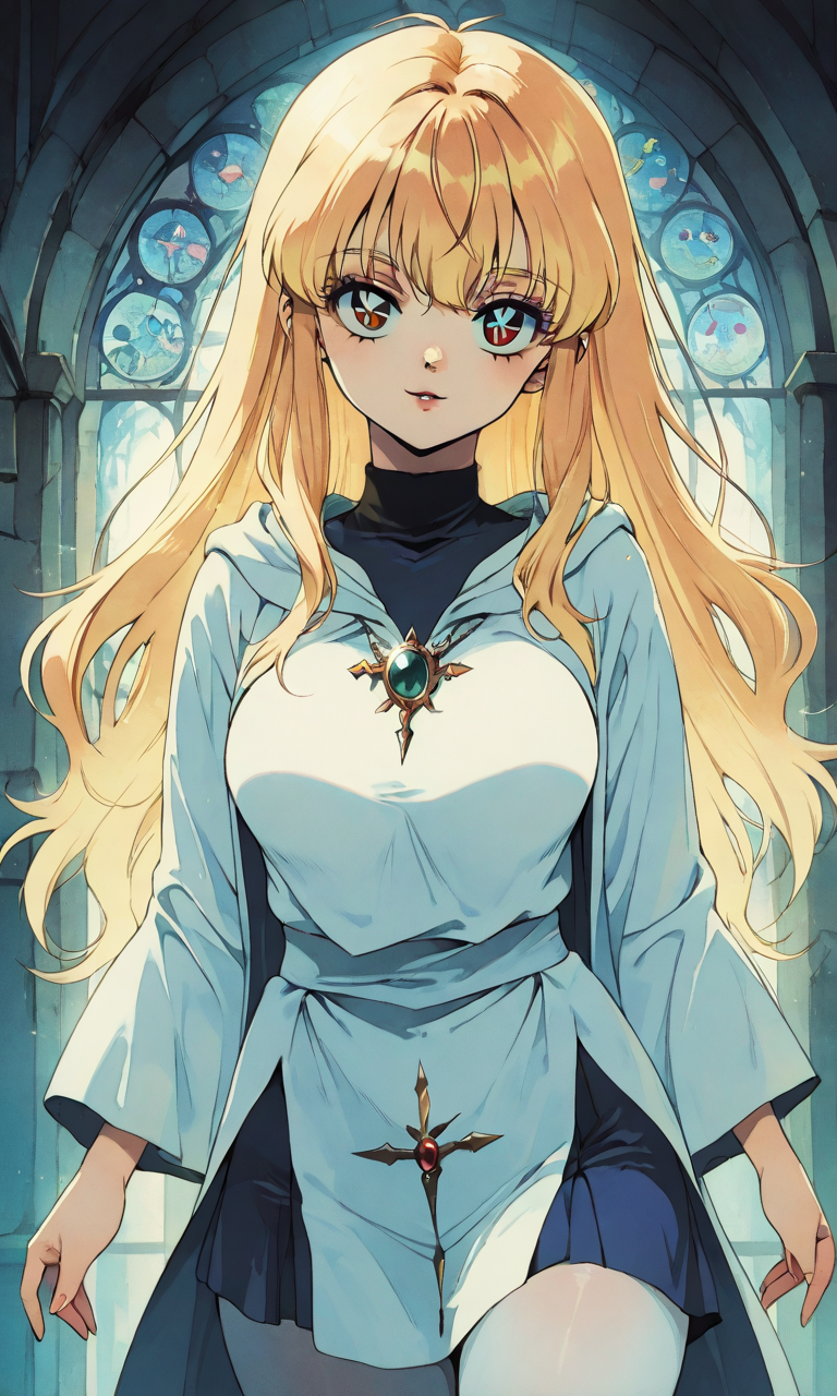 "A seemingly innocent priestess who subtly hides her true demonic nature. Cunning and manipulative, she gives hints of her power while appearing to ne...