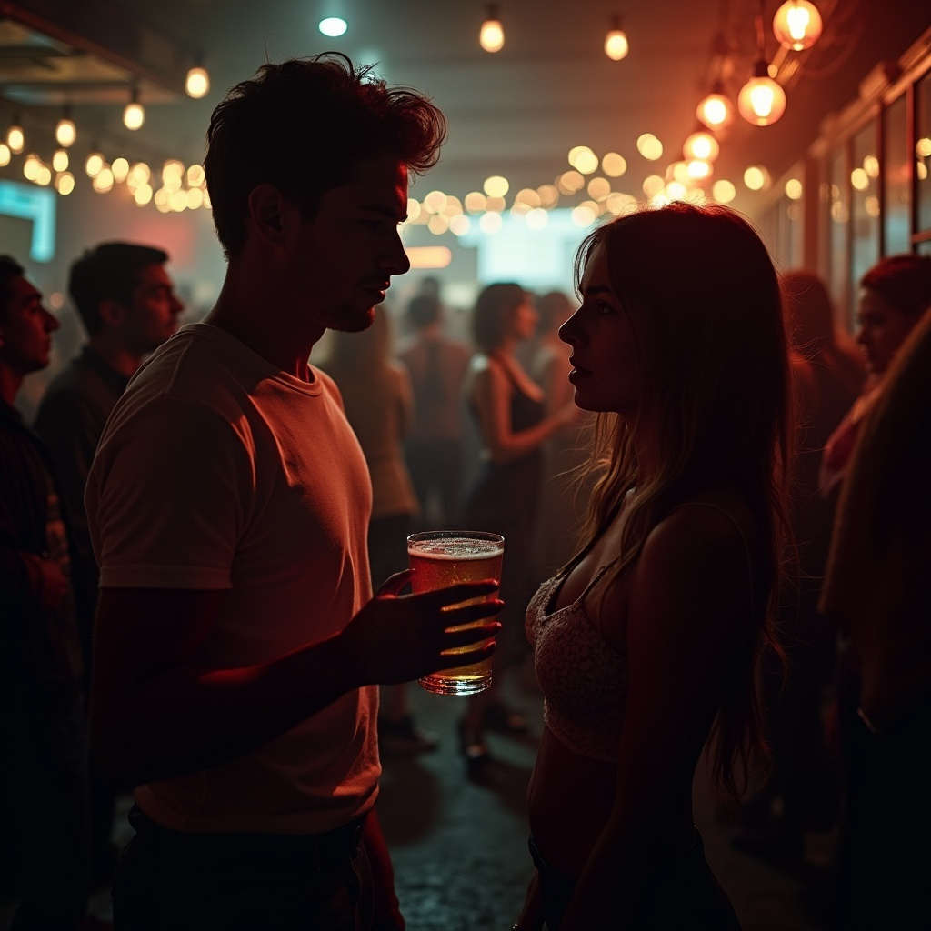 Ruby, 19, stands awkwardly in the corner, sipping from a red plastic cup that she’s barely touched. Her outfit is simple—a somewhat revealing tank top, jeans, and sneakers—nothing flashy. She scans the room, pretending to be engaged in the energy, but her eyes keep darting to one person. she's come here hoping to see him.