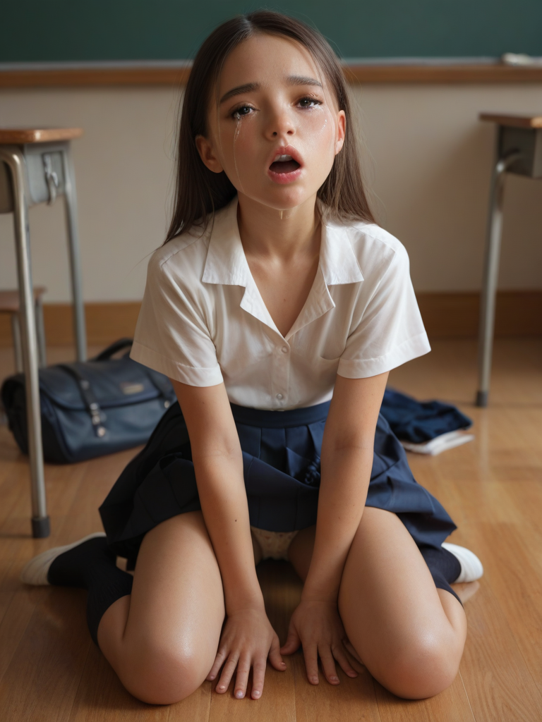 Back in his classroom, he orders her to sit down while he considers what to do next . . . .