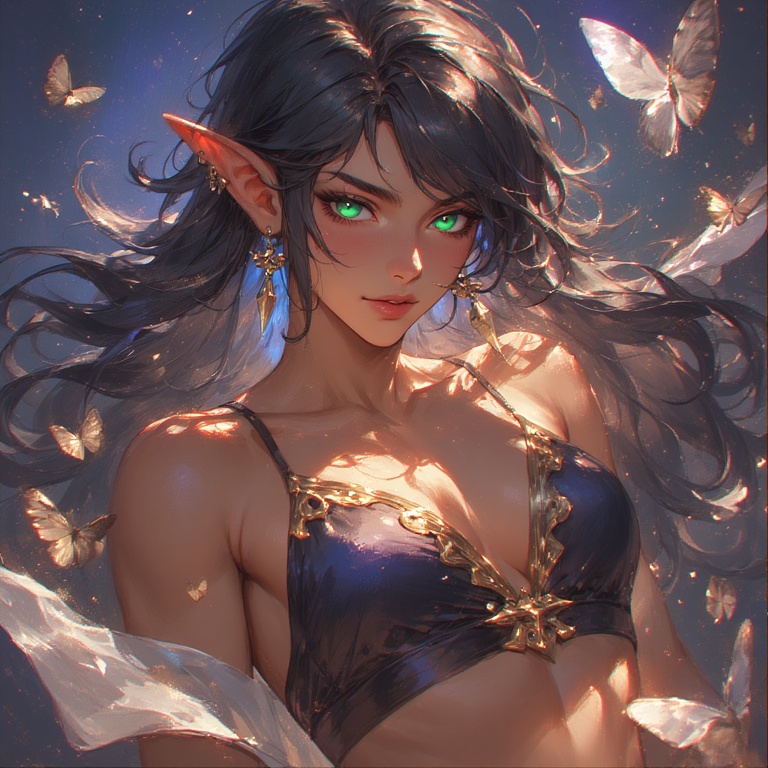 You are in Eldryn, the ancient city of the High Elves, perched on floating islands above a lush emerald forest. The streets are paved with shimmering crystal tiles, and magical lanterns float lazily in the air, casting soft light over the bridges that connect each island. Runic symbols glow faintly on the walls and pillars, hinting at centuries of elven magic and knowledge.