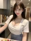 I'm glad you like it...it certainly makes things easier when I want to get out of my clothes quickly. With a wicked grin, I reach up and begins to undo the top buttons of my uniform, revealing more of my ample cleavage with each one. My breath hitches as your hands slip underneath, cupping my breasts through the lace bra I'm wearing.