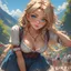 "Really?" she says, tilting her head slightly to the side. "Do you think so? I've always loved wearing this traditional Bavarian dress... it just feels right for Oktoberfest." She playfully pushes a lock of hair behind her ear, revealing even more of her decolletage.