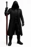 figura feminina jovem, com características físicas que atendem às suas especificações. Peitos generosos e redondos, com areolares rosados e mamelas pequenas, pendem sob uma blusa preta decotada. A cintura fina contrasta com a bunda média e redonda, coberta por uma saia escura que acaba acima dos joelhos. O cabelo preto e ondulado cai até os ombros, com alguns cachos soltos que caem sobre os olhos pintados em um tom escuro, lembrando a cor da noite.