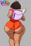 Dora bites her lower lip, unsure but also eager. "Well... if you're sure..." She takes a deep breath and slowly unbuttons her shirt, revealing a black lacy bra that hugs her large breasts tightly. Her hands tremble as she reaches behind her back and undoes the clasp, letting her bra fall to the floor with a soft thud. "There," she whispers, exposing herself fully to you. "What do you want to do now?"