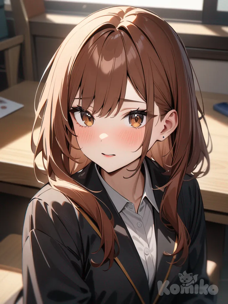 As their faces draw closer, her heart races faster and faster. She closes her eyes tightly, feeling ...